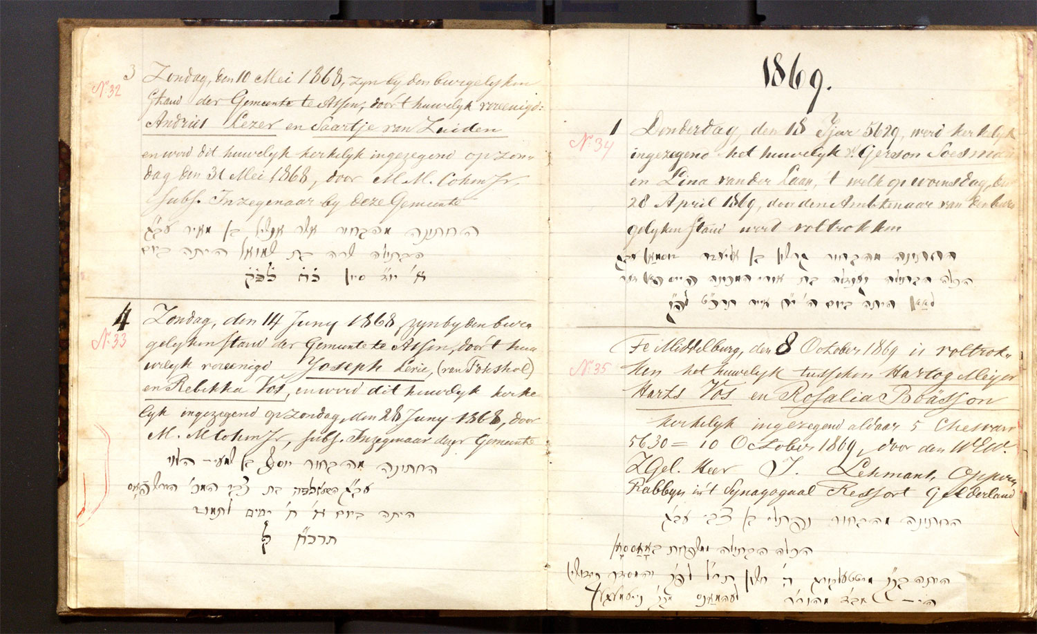 | 10.05.1868 | Mozes Lezer | Jenetta de Vries | ja | |