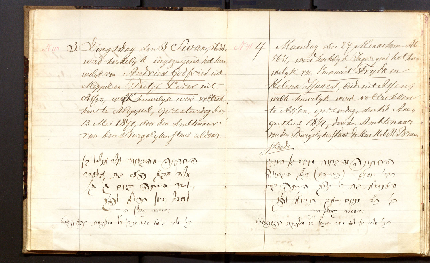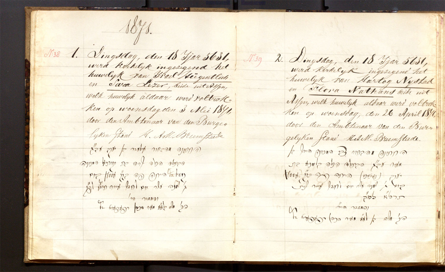 | 26.04.1871 | Hartog Nijstad | Flora Nathans | ja | |