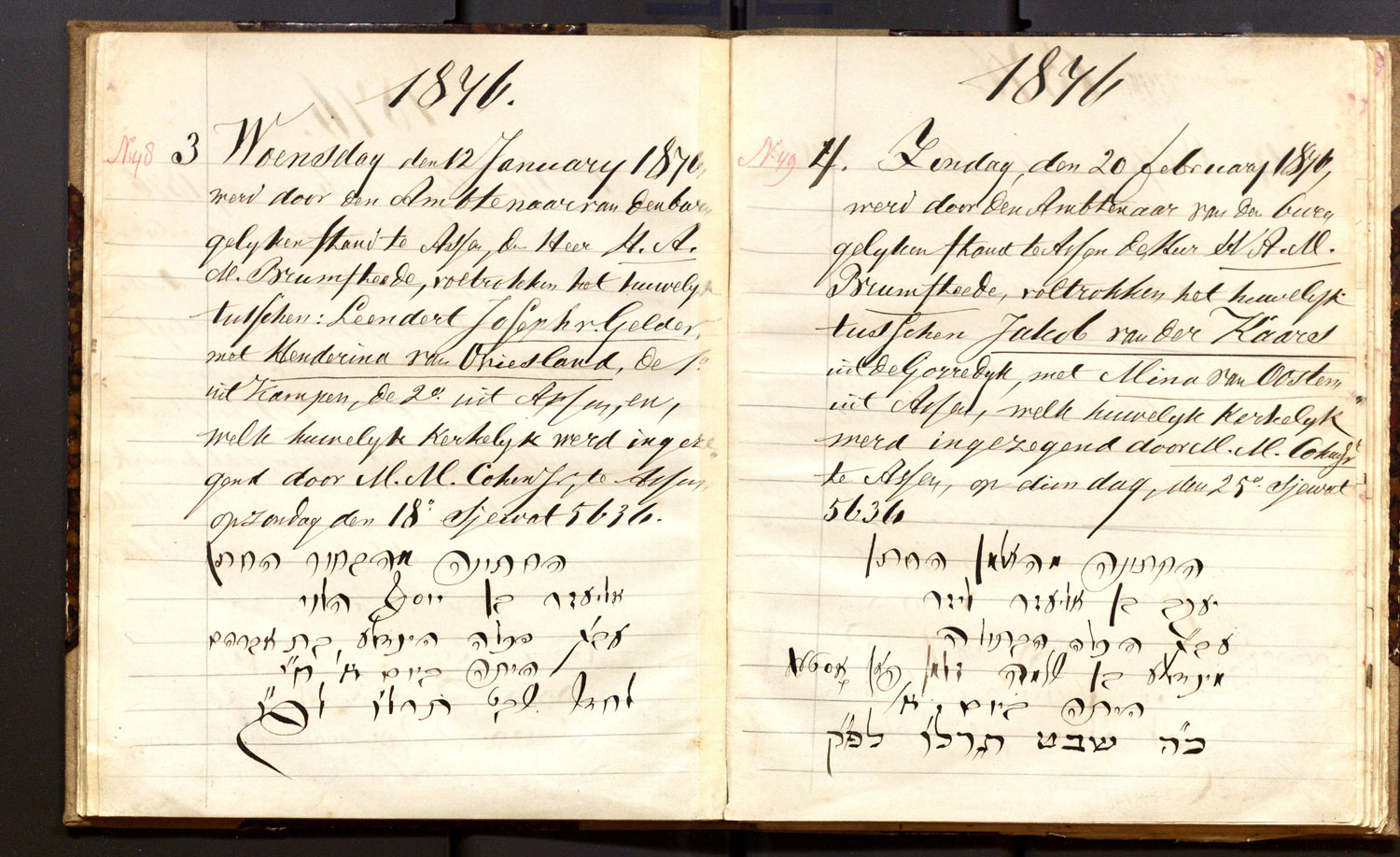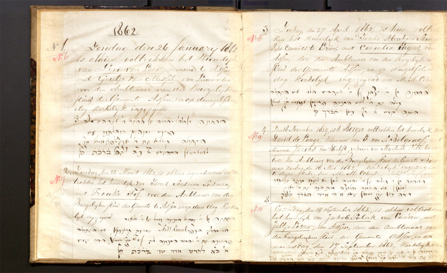 | 26.01.1862 | Levi van Leer | Grietje van Messel | ja | |
