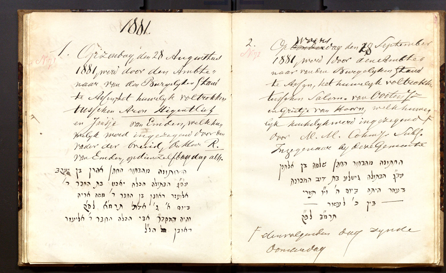 | 28.08.1881 | Aron Hiegentlich | Jansje van Emden | ja | |