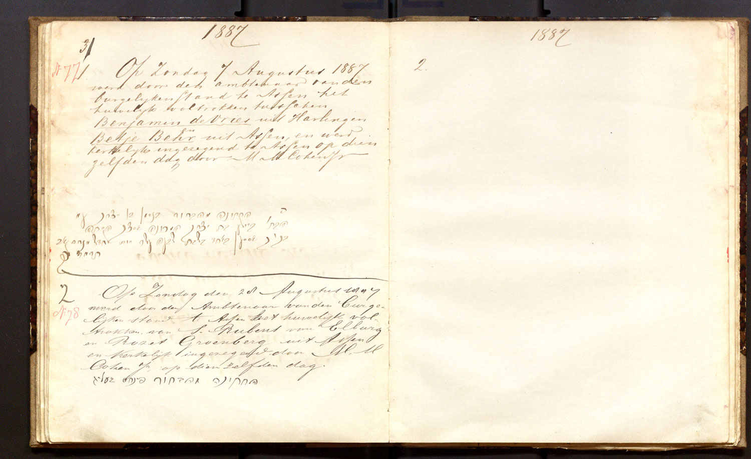 | 12.08.1877 | Israel de Jong | Gesina de Leeuw | ja | |