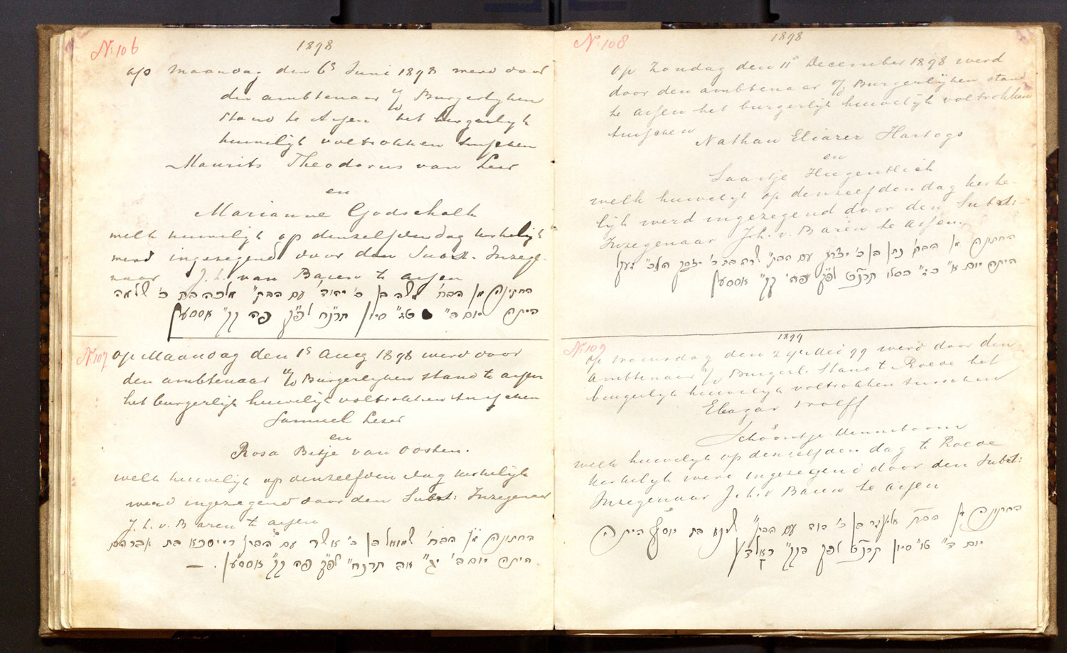 | 06.06.1898 | Maurits Th. Van Leer | Marianne Godschalk | ja | |