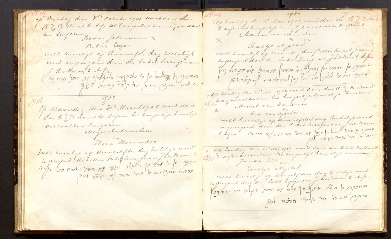 | 17.08.1902 | Marcus Lezer | Aaltje Boekbinder | ja | |
