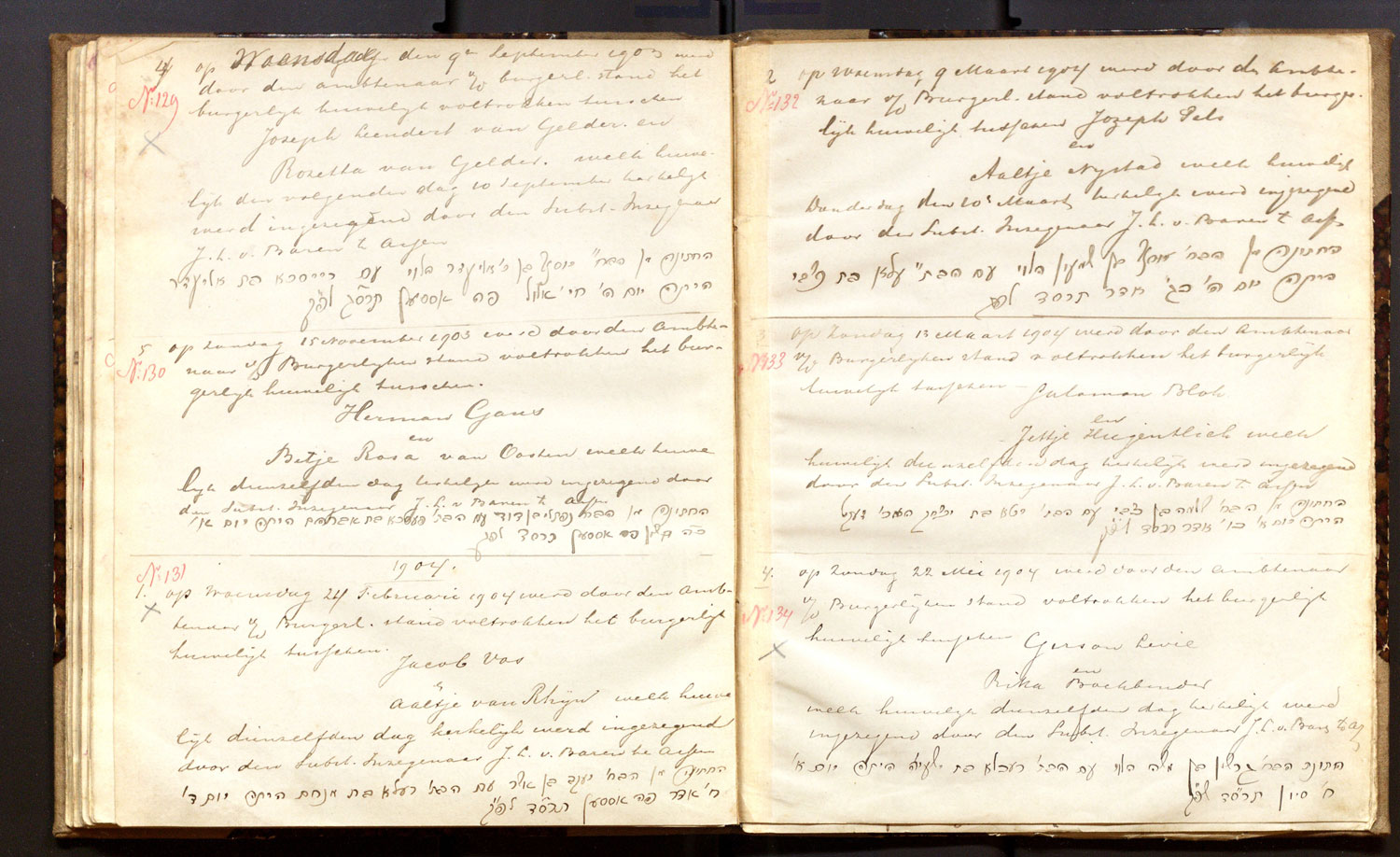 | 20.06.1904 | Levi van der Veen | Saartje Hiegentlich | ja | |