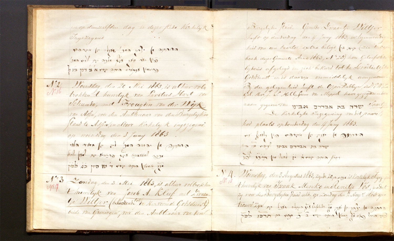 | 20.05.1863 | Levitus Hart | Frougien van der Wijk | ja | |